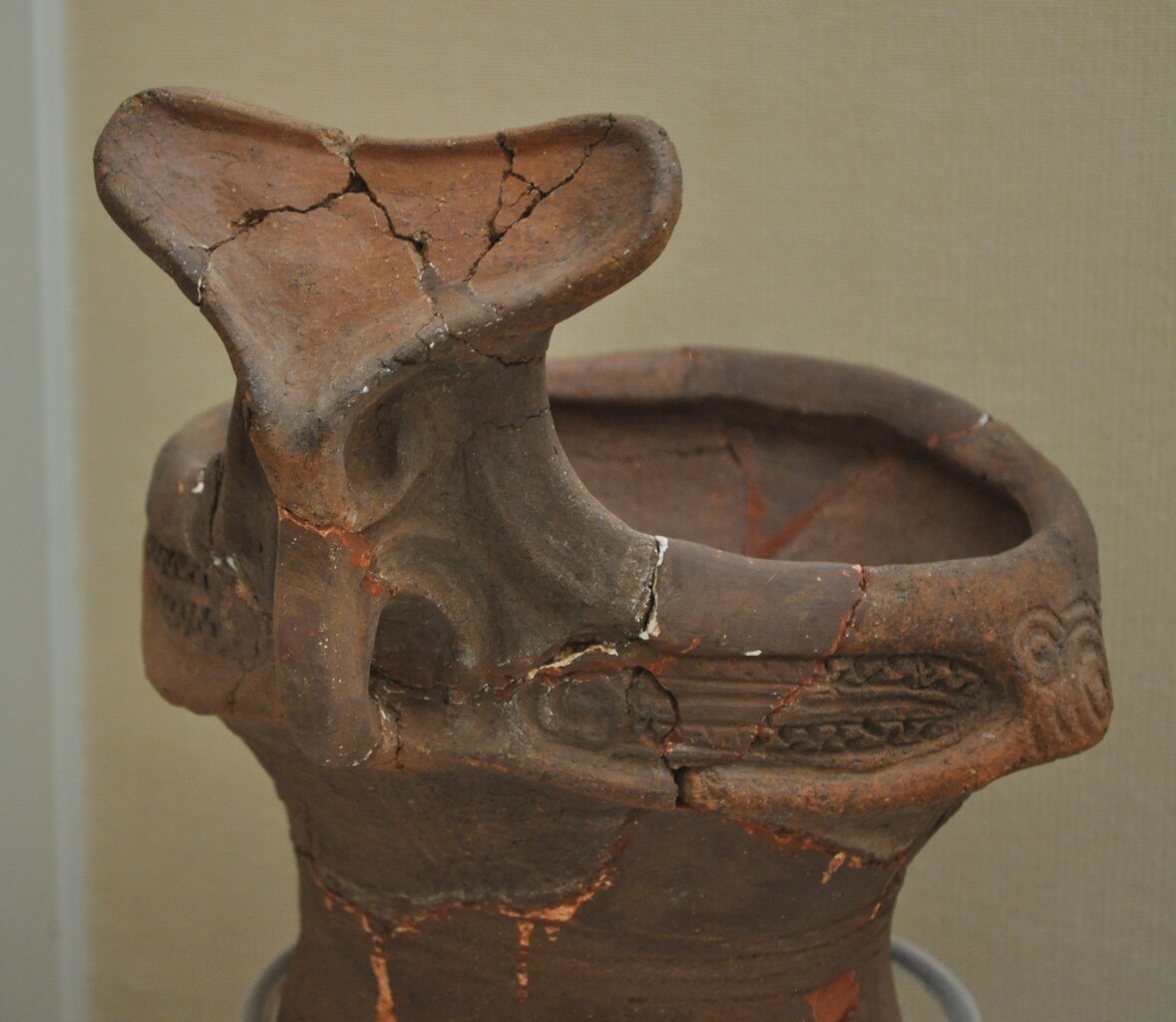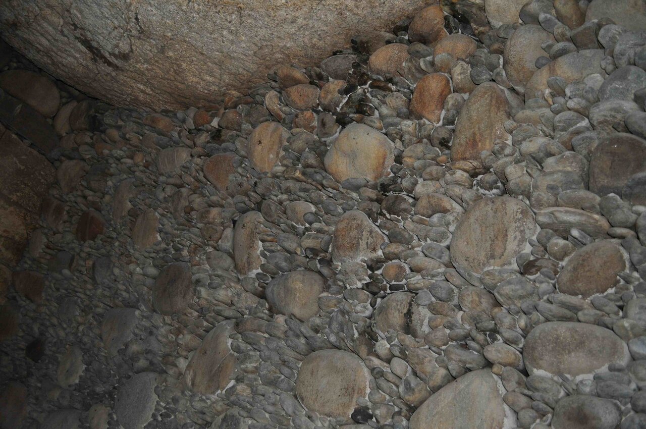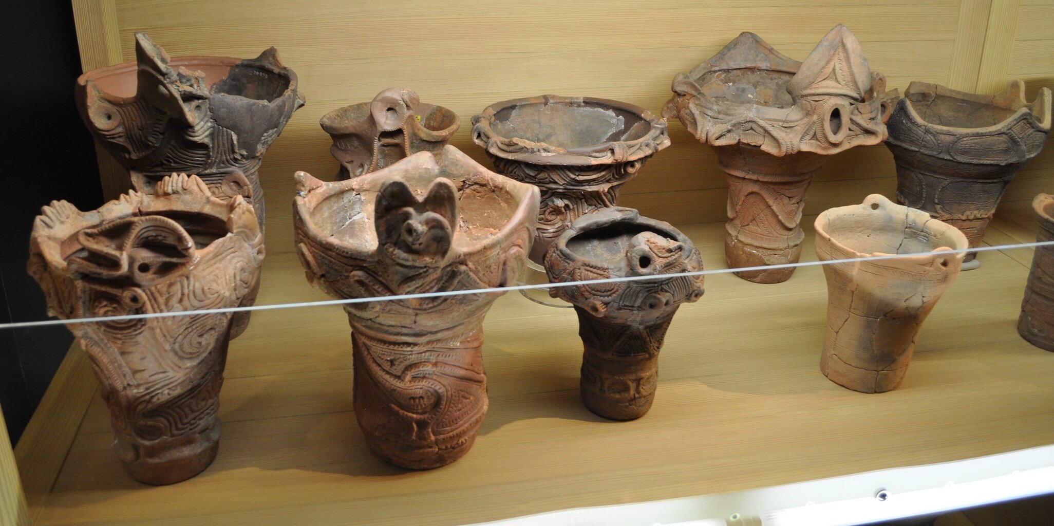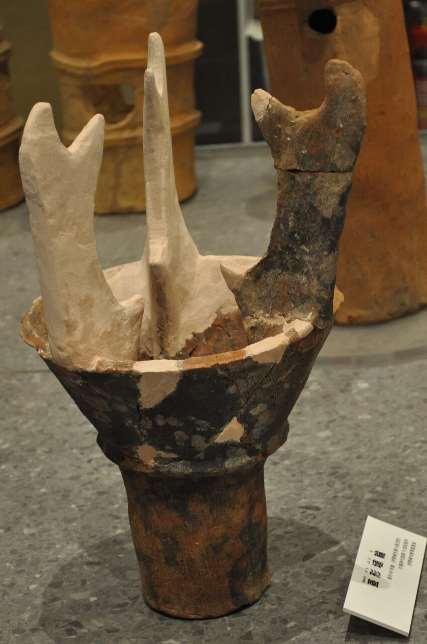 渋川市の金井東裏遺跡のものだが、今まで背中のヨロイだけが姿を見せている写真しか知らなかったのだが、ここでは、その背中側のヨロイが上に持ち上げられるようにして、中の人骨の様子がリアルに見れるようになっているのだ。ひざまづいてそのまま前のめりに倒れ込んだようにして、火砕流に埋もれてしまったような状態がとてもよくわかる。鎧兜を身に着けて、怒れる火山を鎮めようと祈っていたのであろうか。