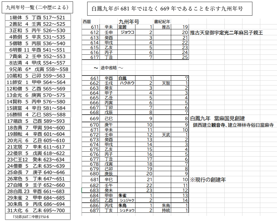 正木裕氏は「もう一人の聖徳太子」注1)を論じられ、一人目は阿毎多利思比孤であり、二人目の聖徳太子である利歌彌多弗利の事績の中で629年から634年に聖徳年号があったとされる。これは二中歴の九州年号にはない年号である。仁王元年・623年即位~命長七年・646年崩御すると利歌彌多弗利の治世こそ聖徳の世であった可能性がある。ならば風土記の大石は七世紀の半ばに作られて、何らかの理由で途中で放置されたと考えられるのではないか。そして用途不明とされた石造物は、今では繰り抜き式石槨との考えもある。