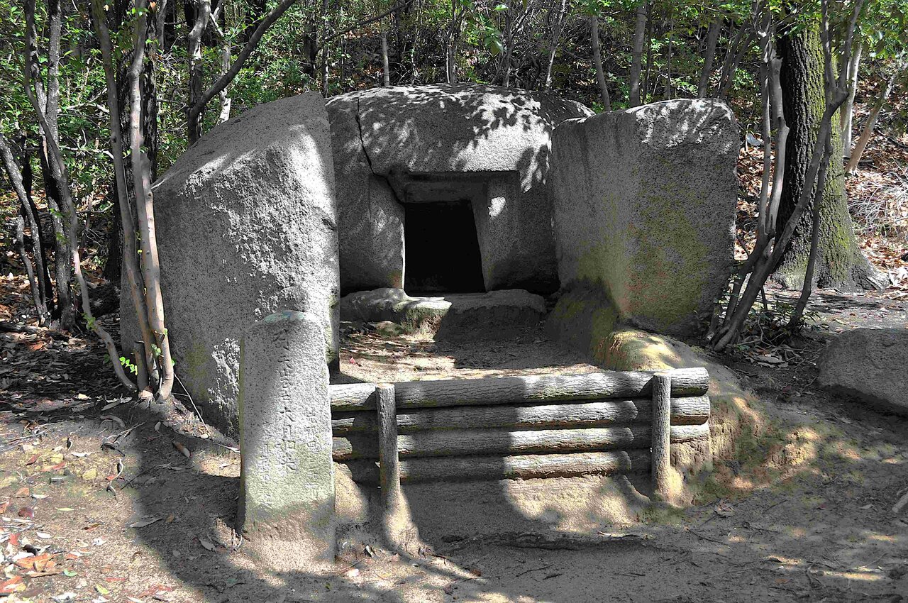 皇極紀の鎌足初出の記事に、神祇伯に任じられるのを辞退し摂津三嶋に退去するとある。伊予国風土記逸文には御嶋に鎮座する大山積の神は百済の国より渡って来たとある。三島鴨神社の祭神がその大山祇神である。そしてこの地は九州にまつわる地名、神社が存する。芥川沿いの筑紫津神社、淀川の対岸に津嶋部神社、寝屋川市に高良(打上)神社があり、ここには石宝殿古墳が隣接している。鬼の雪隠と同様の横口式石槨で付近の列石から八角墳との指摘もある。